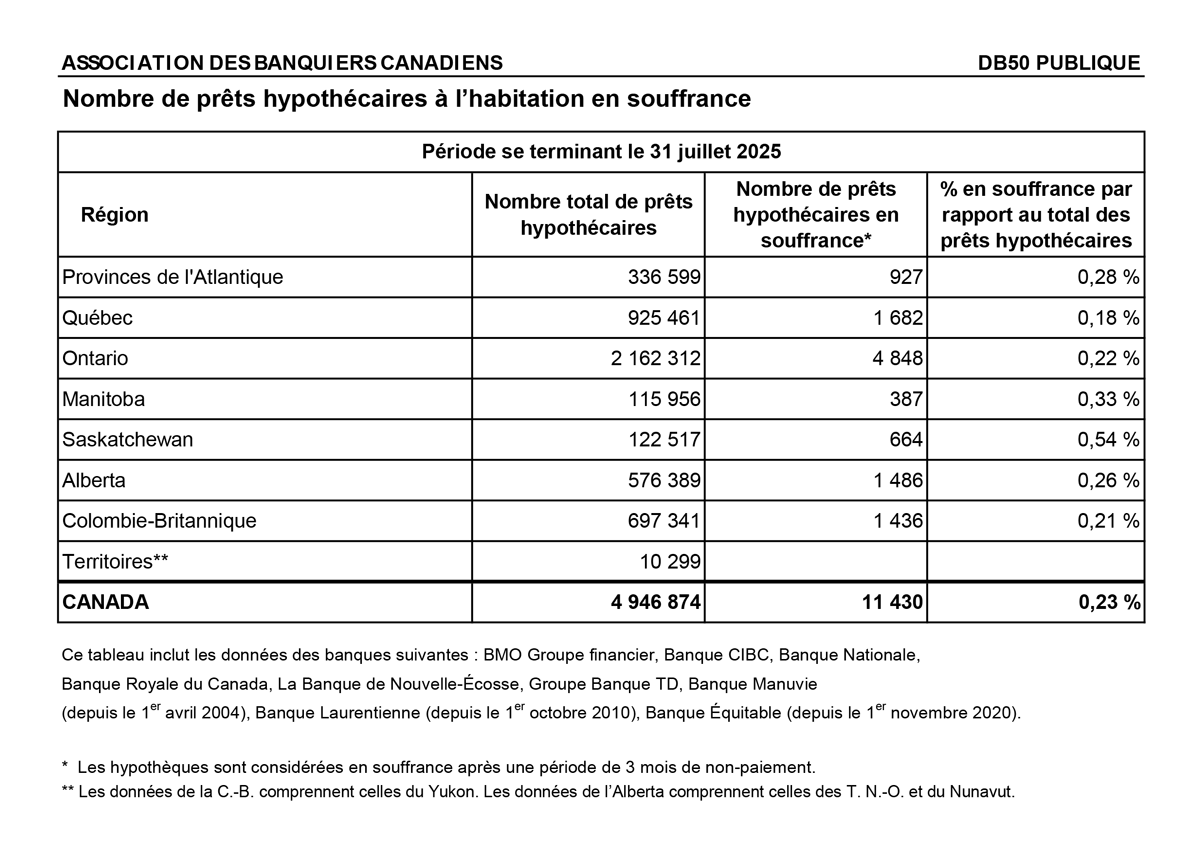 Tableau : Prêts hypothécaires à l’habitation en souffrance - juillet 2025